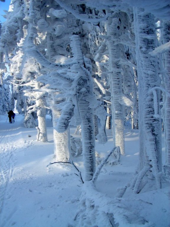 Weihnachten 2005 haben wir (der genetischen Belastung der B. folgend) im Kreise der Familien im Adlergebirge an der Grenze zwischen Ostböhmen und Nordmähren verbracht. Einschlägige Quellen geben ja zum Besten, dass sich dort ab Nikolaus der Schnee flächendeckend aufschichtet – ein Muss also für den passionierten Langläufer…..Tatsächlich lag bei unser Ankunft in Rokytnice etwa ein Meter – und es wurde noch mehr.